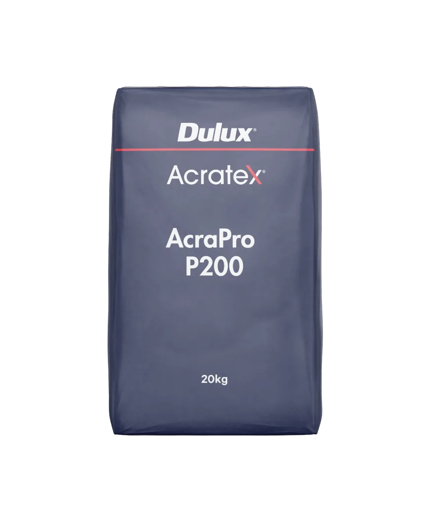 Dulux Acratex AcraPro P200 can be applied by traditional Hawk & Trowel method or via Render Pump in single application from 4-6mm or up to 8mm thick in multiple applications.