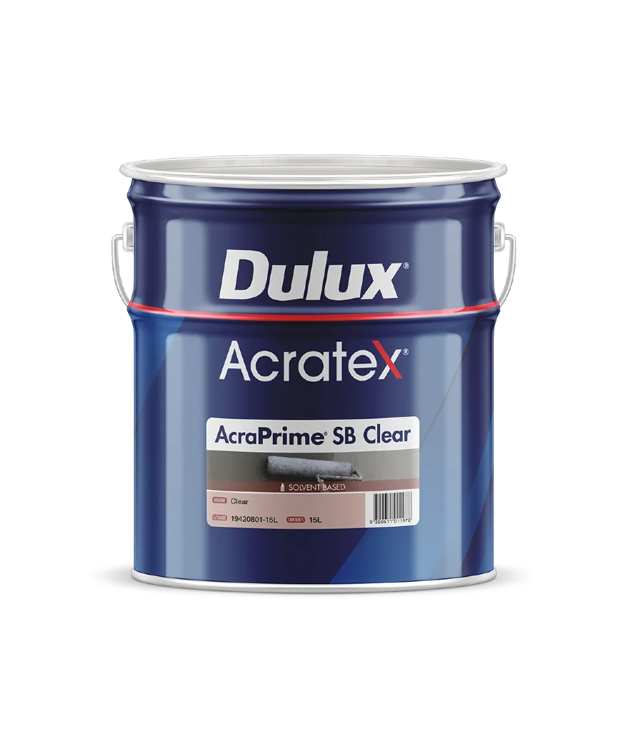 Dulux Acratex Acraprime Solvent Based White or Clear may be applied by brush, roller and conventional or airless spray. A brush is required to cut in around edges and obstacles.