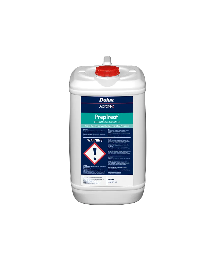 Acratex® PrepTreat™ is a water-based low toxicity, Bacterial, fungal and algal sterilising treatment designed to kill film spoilage species, making it an integral component with the Roof Membrane System to be applied and left on pre-cleaned surfaces prior to subsequent coating systems.
