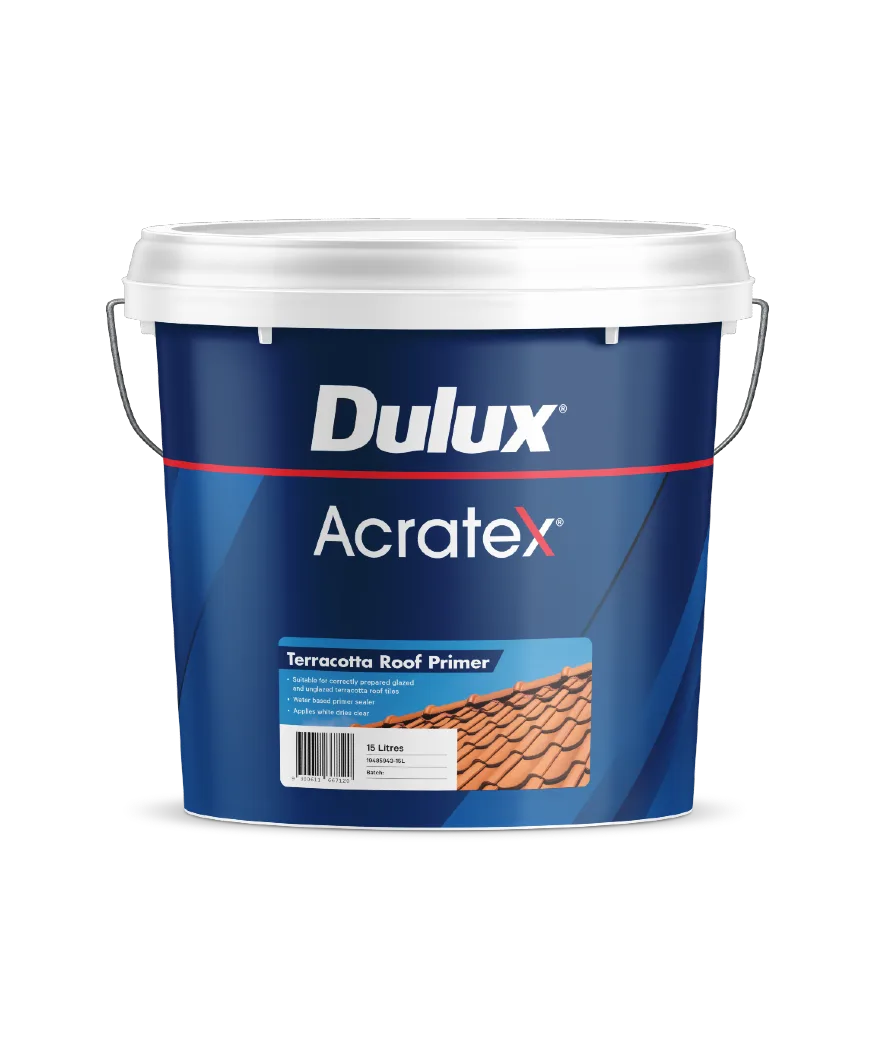 Dulux Acratex® Terracotta Roof Primer is a water based acrylic primer sealer supplied as a milky white solution which dries to a clear film.