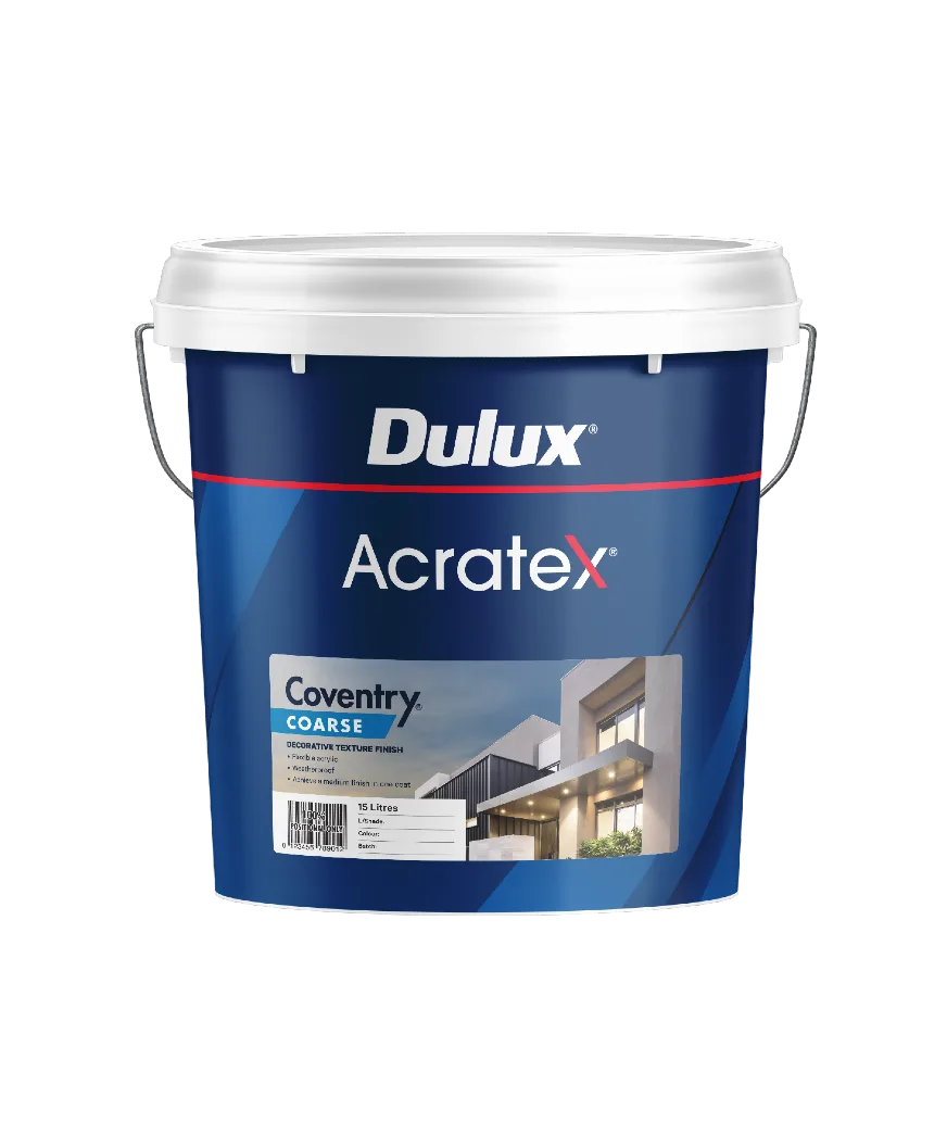 Dulux Acratex Coventry Coarse is applied by hawk and stainless steel trowel, then finished in a circular motion with the plastic finishing float to achieve an even granular appearance.