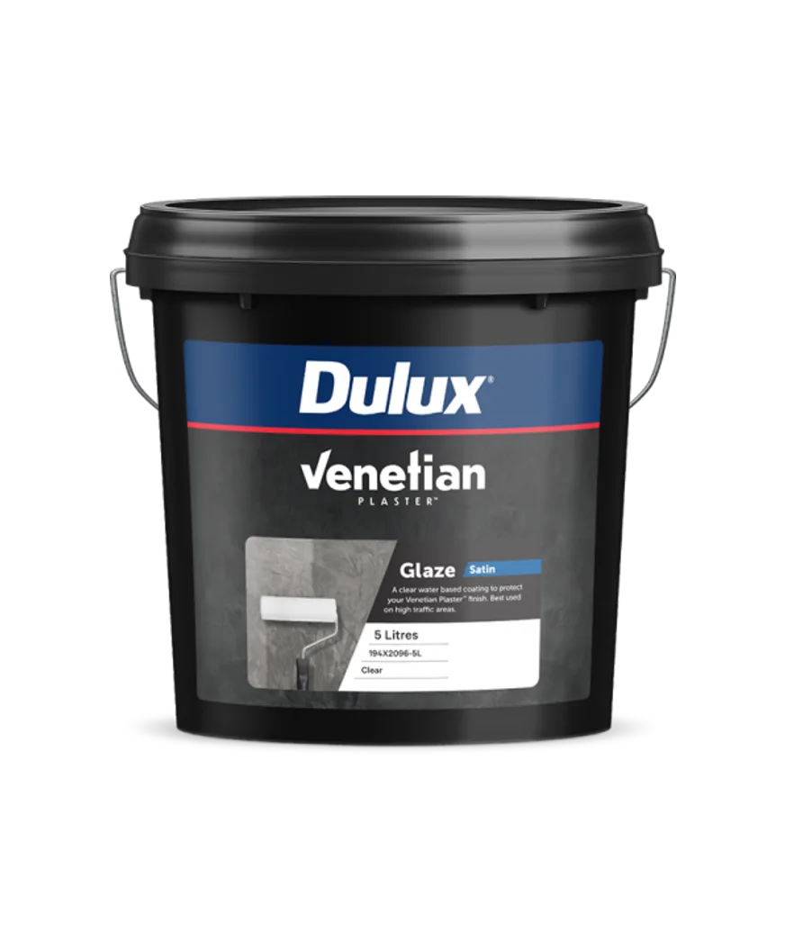 Dulux® Venetian® Plaster Glaze Coat Satin is a clear water-based matt finish formulated on a 100% acrylic emulsion resin for application over Dulux Venetian® Plaster range. Easy to use, safe and economical clean-up. Protects Venetian Plaster against staining, dirt pick up, pollution and chemical attack. Satin Glaze is film forming and may slightly alter the natural appearance of Venetian Plaster.