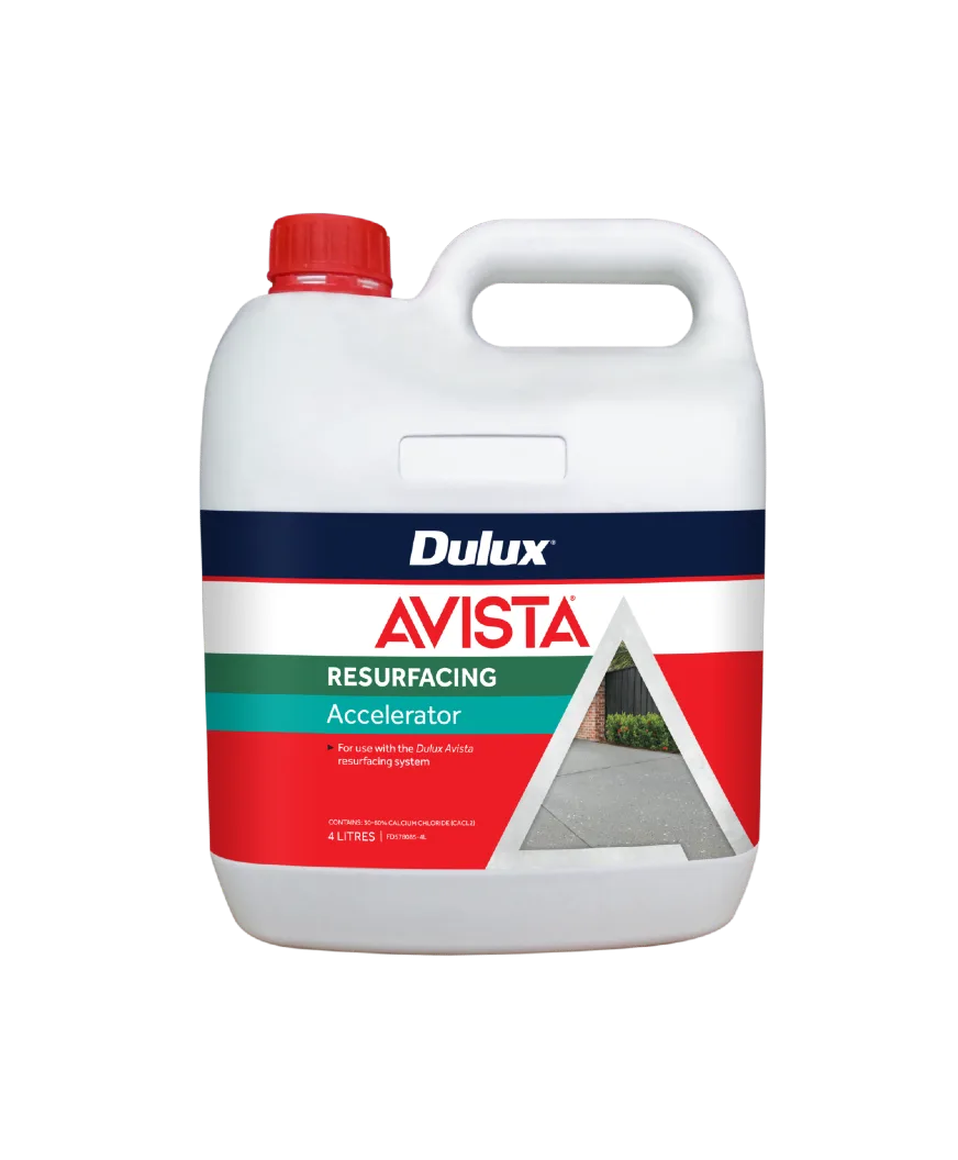 Dulux® Avista® Resurfacing Accelerator is recommended to be used when the temperature is below 15°C but above 10°C during the application of Dulux Avista Resurfacing Compound as it will speed up the drying time.