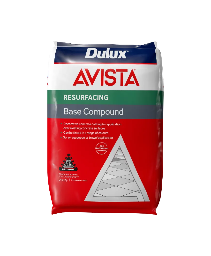 Dulux Avista Resurfacing Base Compound is a decorative concrete coating suitable for application over existing cured concrete surfaces. It can be tinted to a range of colours by adding Dulux Avista Colour Oxide.