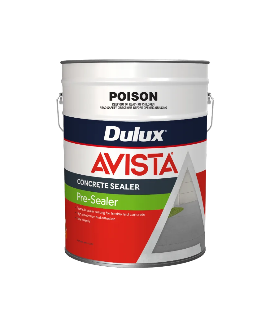 Dulux Avista Concrete Sealer Pre-Sealer is a solvent based clear coating for use as a sacrificial sealer coating on freshly laid concrete, to help protect the substrate from weather and ingress of dirt and grime in the short term.