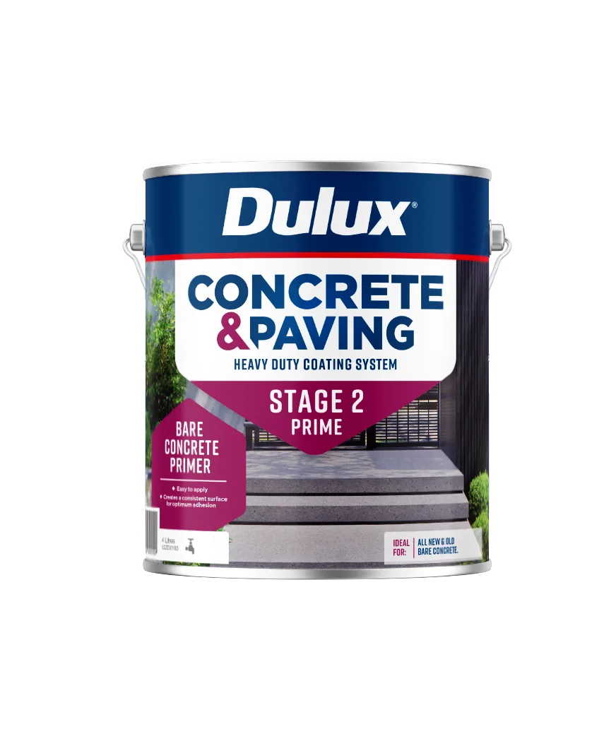 Dulux Concrete & Paving Bare Concrete Primer is the second stage in preparing bare concrete surfaces for the finishing coat. It is formulated to reinforce the surface for optimal adhesion of subsequent coats of paint.