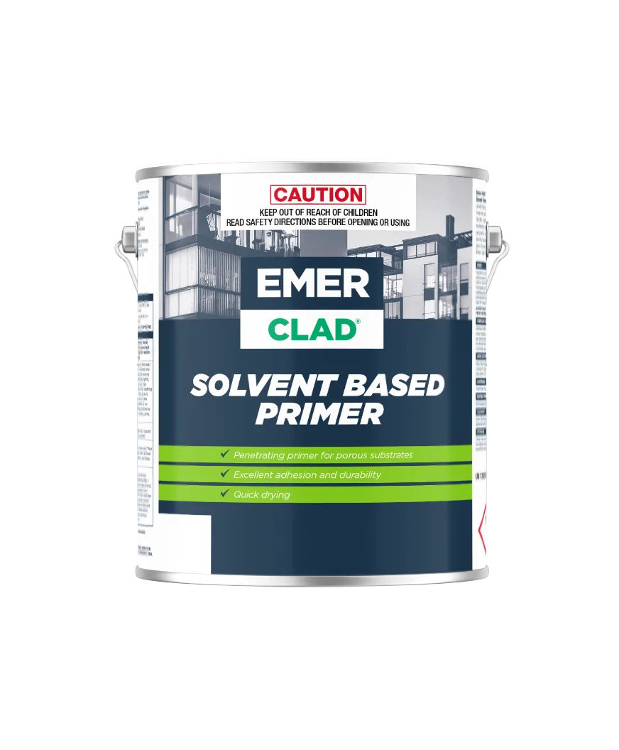 Emer-Clad Solvent Based Primer is a solvent-based quick drying sealer with extremely good penetrating properties on absorbent or poorly bound surfaces. Formulated to bind and reinforce powdery, chalking paint and to penetrate and seal absorbent surfaces to provide a sound base for subsequent acrylic coatings.