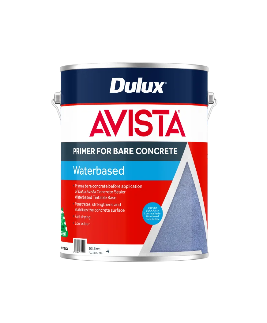 Dulux Avista Bare Concrete Primer can be used to prime bare concrete surfaces before application of the Dulux Avista Waterbased Tintable Sealer.