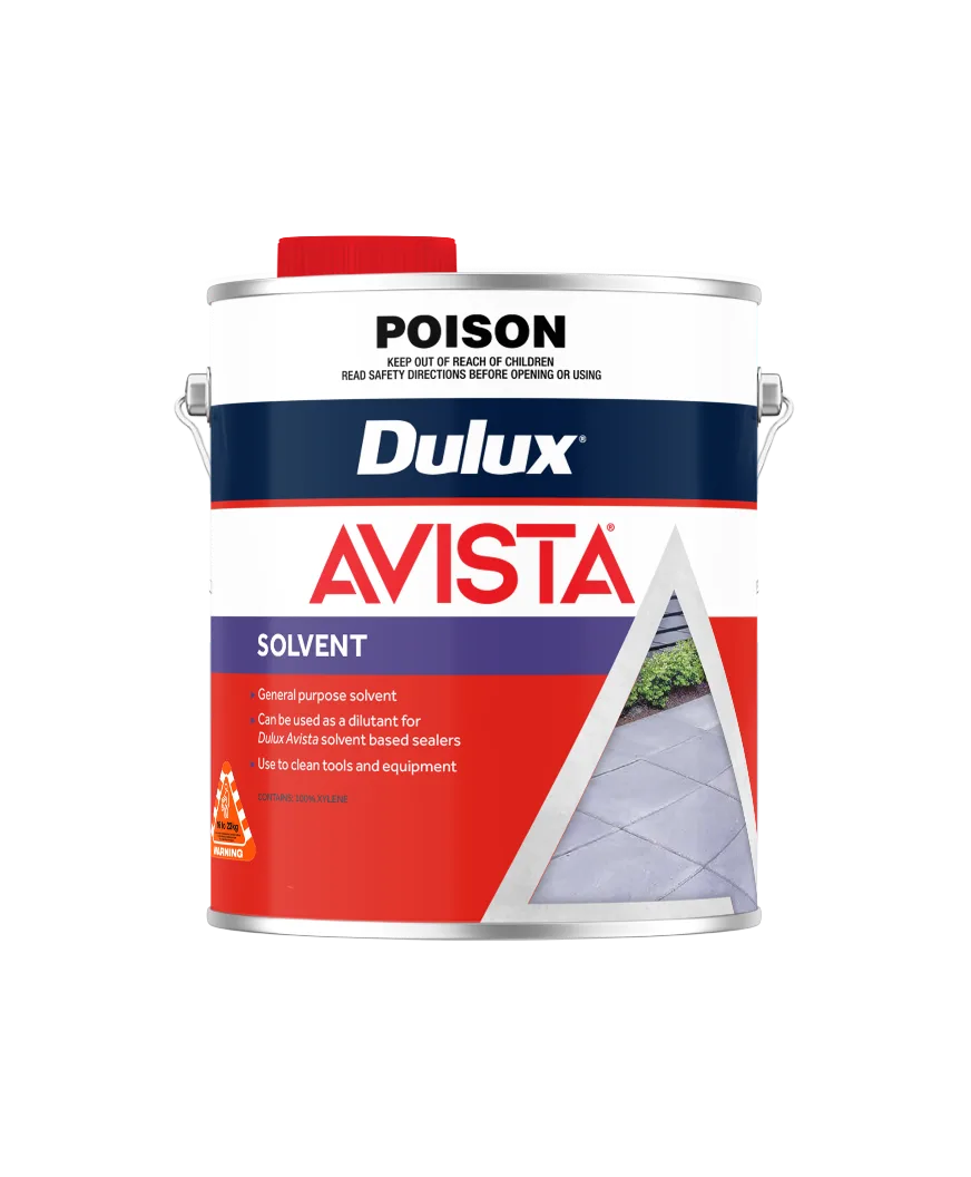Dulux Avista® General Purpose Solvent can be used as a dilutant for Dulux Avista solvent based sealers as required, and to clean tools and equipment.