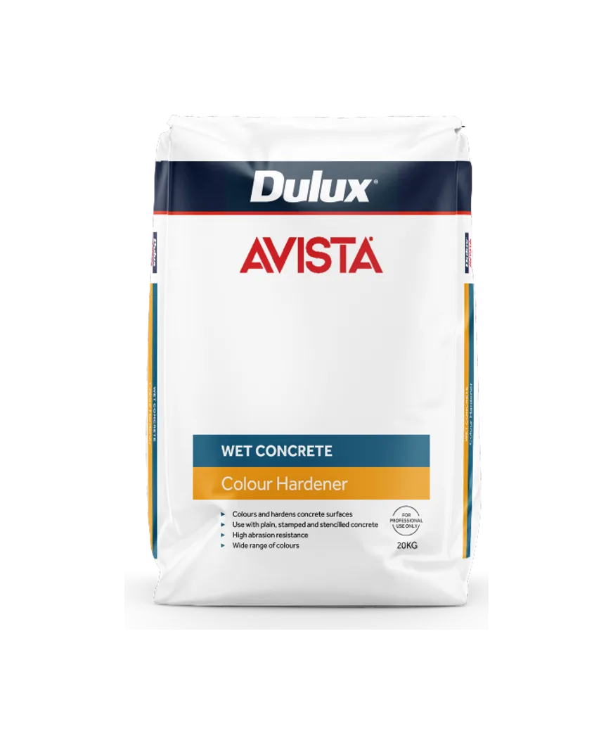 Dulux® Avista® Colour Hardener is a coloured cement based powder designed to colour and harden concrete surfaces. It is applied by hand casting over freshly poured concrete and is ready to use in premixed colours.