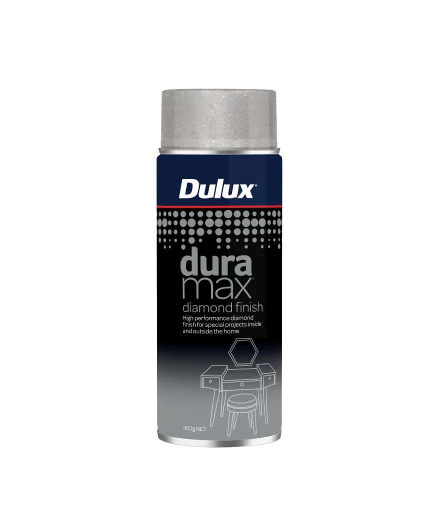 Dulux Duramax® Diamond Finish is a fast-drying spray paint delivering a brilliant sparkling finish on special projects inside and outside the home. The unique combination of technology delivers an intense, sparkling finish. Diamond Effect is perfect for transforming your painted finish into a premium diamond effect and is ideal for use with all Duramax® products.