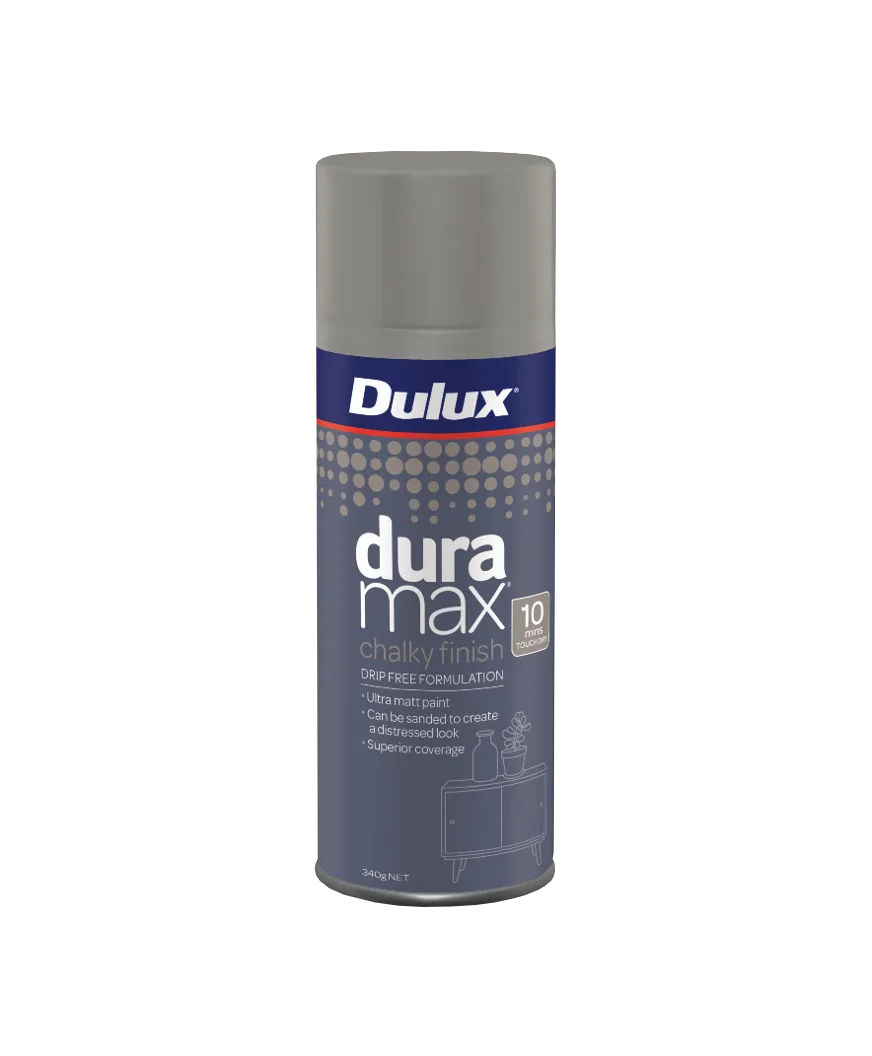Dulux Duramax® Chalky Finish is a fast-drying spray paint delivering a flawless spray with an ultra matt finish and velvety appearance for special projects inside the home.