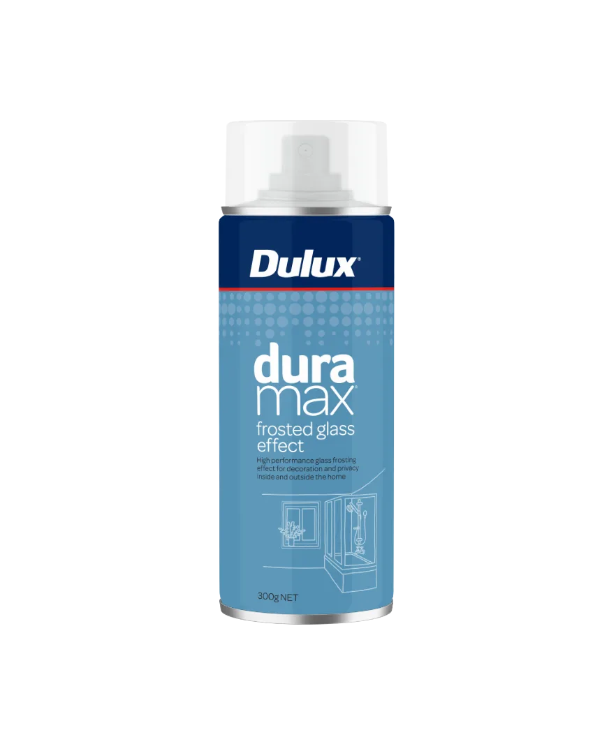 Dulux Duramax® Frosted Glass Effect is fast-drying spray paint, delivering a decorative semi-transparent topcoat that creates an etched glass appearance for privacy inside and outside the home.