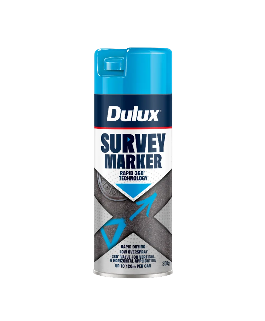 Dulux Survey Marker delivers highly visible, clean sharp markings and superior mileage of up to 120m per can. Dulux Survey Marker is designed specifically for spot marking, symbol and writing applications as required in construction, road works, civil work and surveying.