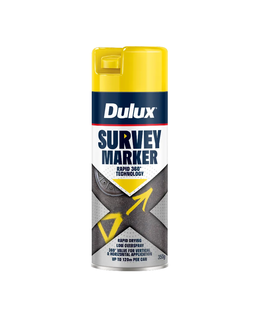Dulux Survey Marker delivers highly visible, clean sharp markings and superior mileage of up to 120m per can. Dulux Survey Marker is designed specifically for spot marking, symbol and writing applications as required in construction, road works, civil work and surveying.