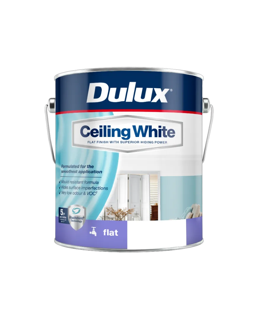 Dulux Ceiling White offers smooth application and a flat finish, making it easier than ever to transform all interior ceilings. With its exceptional coverage and superior hiding power, it effortlessly conceals surface imperfections. Equipped with a 5-year guarantee against mould growth, Dulux Ceiling White is specially formulated to achieve a long-lasting, quality result.