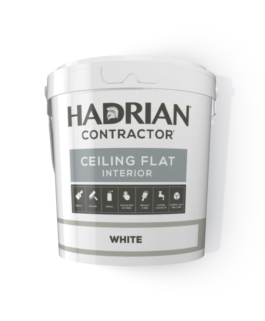 HADRIAN® CONTRACTOR Ceiling Flat is a quick drying, interior latex paint which is specially formulated with a dead flat finish that minimises the appearance of any surface imperfections, making it ideal for ceilings with high levels of critical lighting.