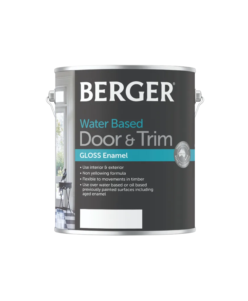 Berger Premium Water Based Enamel Gloss is suitable for use on all interior and exterior doors, windows, skirting boards and cupboards. It dries to a hard, durable finish.