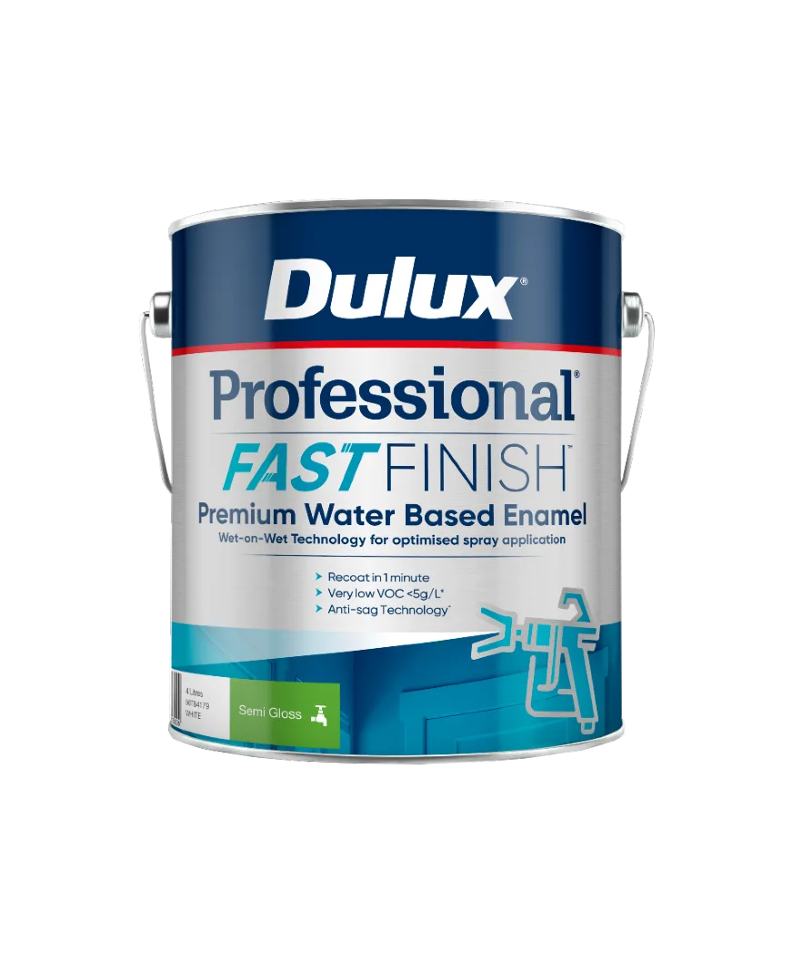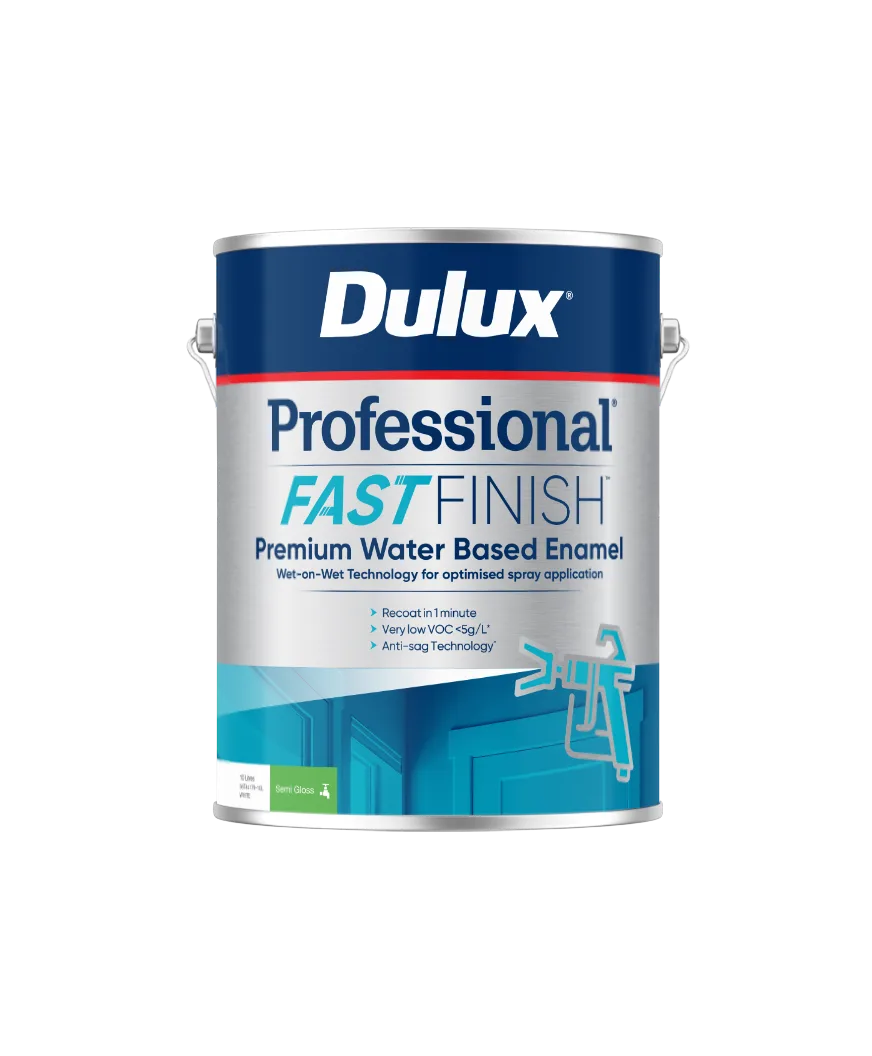 Dulux Professional® FASTFINISH™ Water Based Enamels are premium acrylic products suitable for use on interior and exterior doors, window frames and trim. They are a great alternative to traditional oil-based enamels with the benefits of using an acrylic paint.