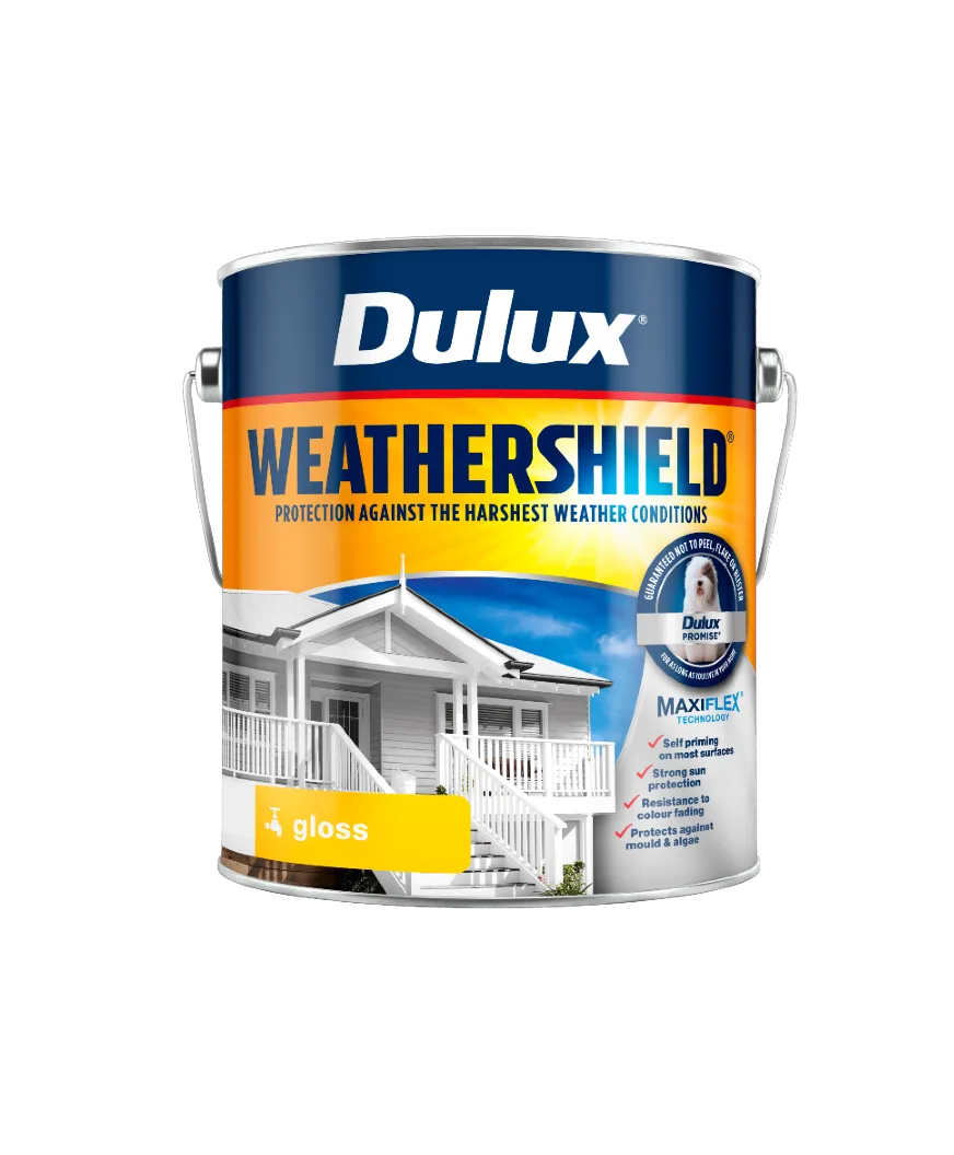 Dulux Weathershield® has been specially designed to provide a tough, hard-wearing finish that provides protection from the harshest weather conditions and keeps your home looking better for longer. Formulated with MaxiFlex® Technology to expand and contract with the surface, Dulux guarantee Weathershield® won't peel, flake or blister for as long as you live in your home.