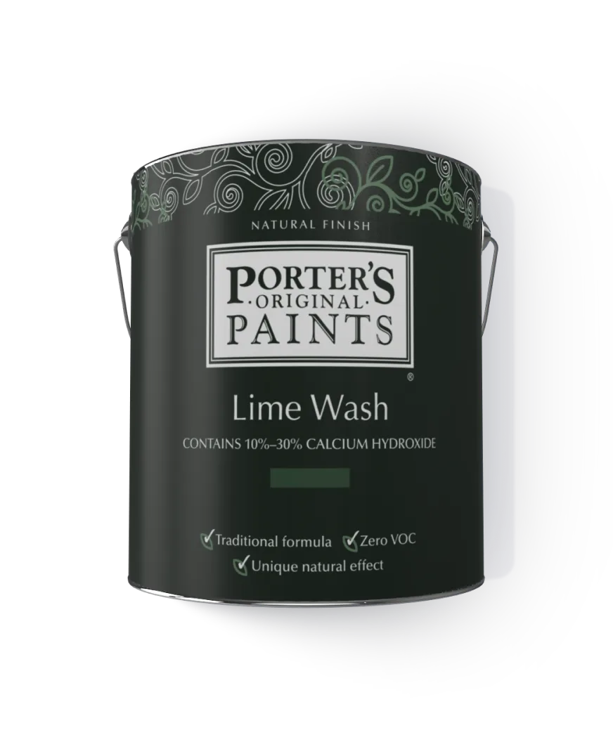 For interior surfaces, use Porter’s Interno Lime Wash. Do not apply in high humidity, below 10°c or above 30°c. Do not apply to walls with a surface temperature below 10°c. Do not allow painted surface to remain damp into the evening when temperatures will fall below 14°c overnight. Low surface or air temperatures prevent the lime wash from curing properly and may cause the development of a whitish bloom of calcification over areas, in patches or over the entire surface.