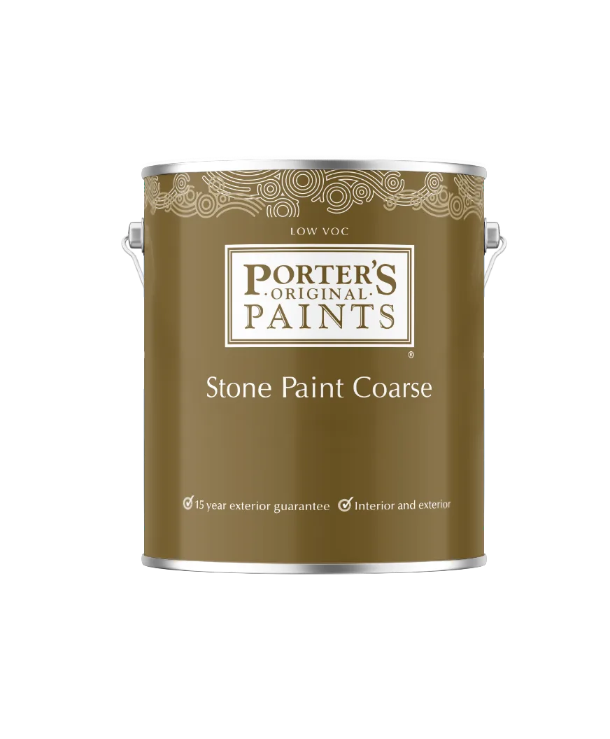 Porter’s Stone Paint Coarse has a coarsely textured finish similar to cement bagging that provides outstanding performance with the appearance of softness that comes with completely flat paints. Superior coverage, very low VOC, low odour, and an ultra-flat sheen level that hides surface imperfections and delivers perfect colour. Interior and Exterior use.