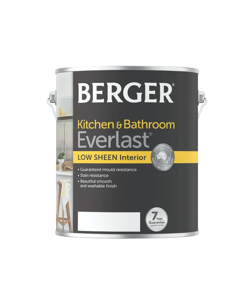 Tinted Colours: Ensure that the paint is thoroughly shaken and stirred immediately after addition of tinter to the can and again before use. Berger Kitchen and Bathroom is not a long term solution for poor building design and construction such as rising damp and inadequate ventilation.
