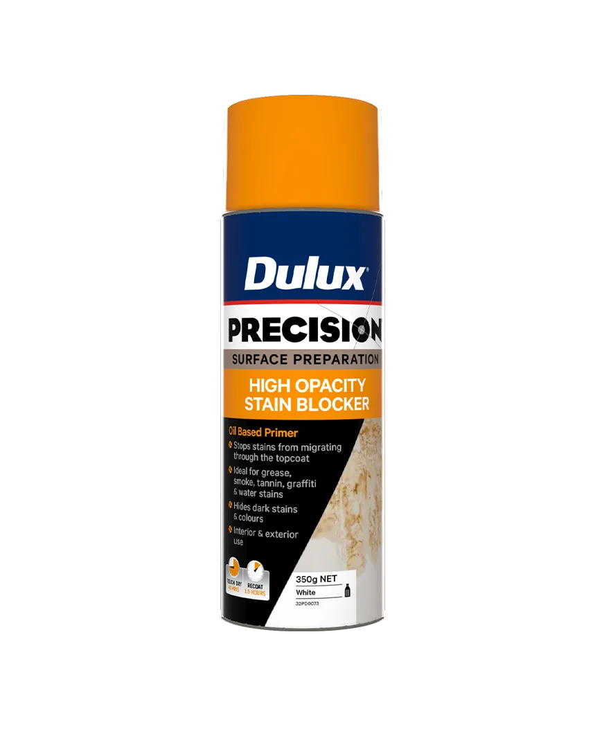 Dulux PRECISION® High Opacity Stain Blocker is an oil-based, fast-drying superior stain blocker for a wide range of water and oil-based stains. It is ideal for blocking grease, smoke, tannin, graffiti and water stains.