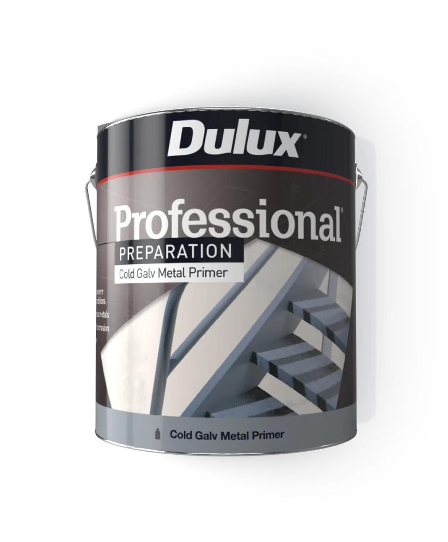 Dulux Professional® Cold Galv Metal Primer is a one-pack zinc rich primer that withstands severe corrosion conditions. Available in Trade Outlets only, applying this product may require professional painter assistance. Check your local stockist for details.