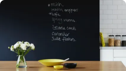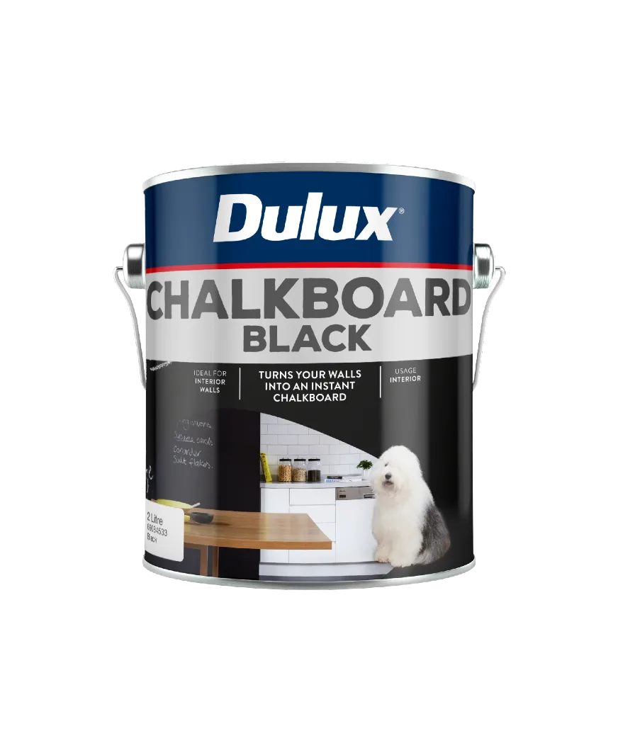 The instant chalkboard created with Dulux Design Effects adds a twist of fun and functional. From imaginative drawings to the weekly shopping list, this product will allow you to instantly transform any surface into a delightful creative opportunity.
