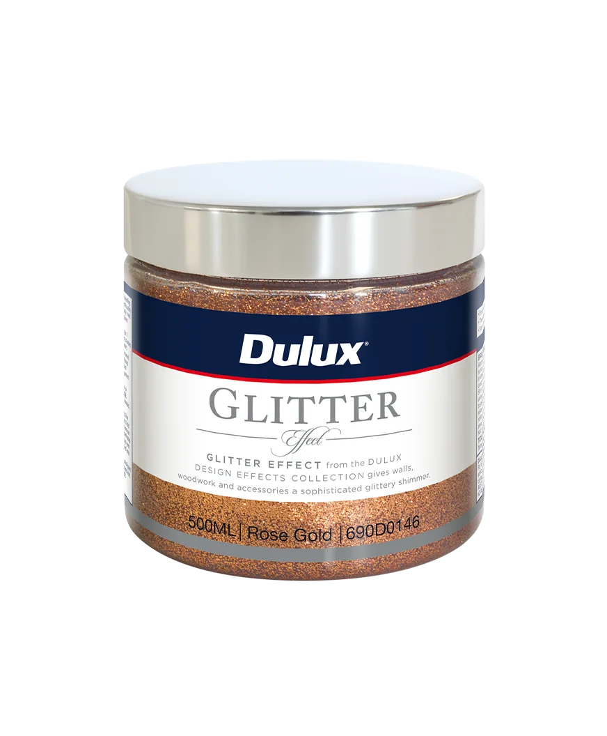 Let the sophisticated Rose Gold Glitter Effect from the Dulux Design Effects Collection elegantly enhance your walls, furniture and accessories with a delicate shimmer.