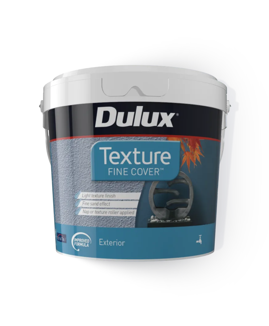 Dulux Texture Fine Cover™ is a flexible acrylic texture for application to bricks, cement render, fibre cement and masonry. It provides a light relief texture profile making it easy to create your perfect look. Apply with a conventional paint roller to create a fine sandy effect or a texture roller to achieve a bolder style.