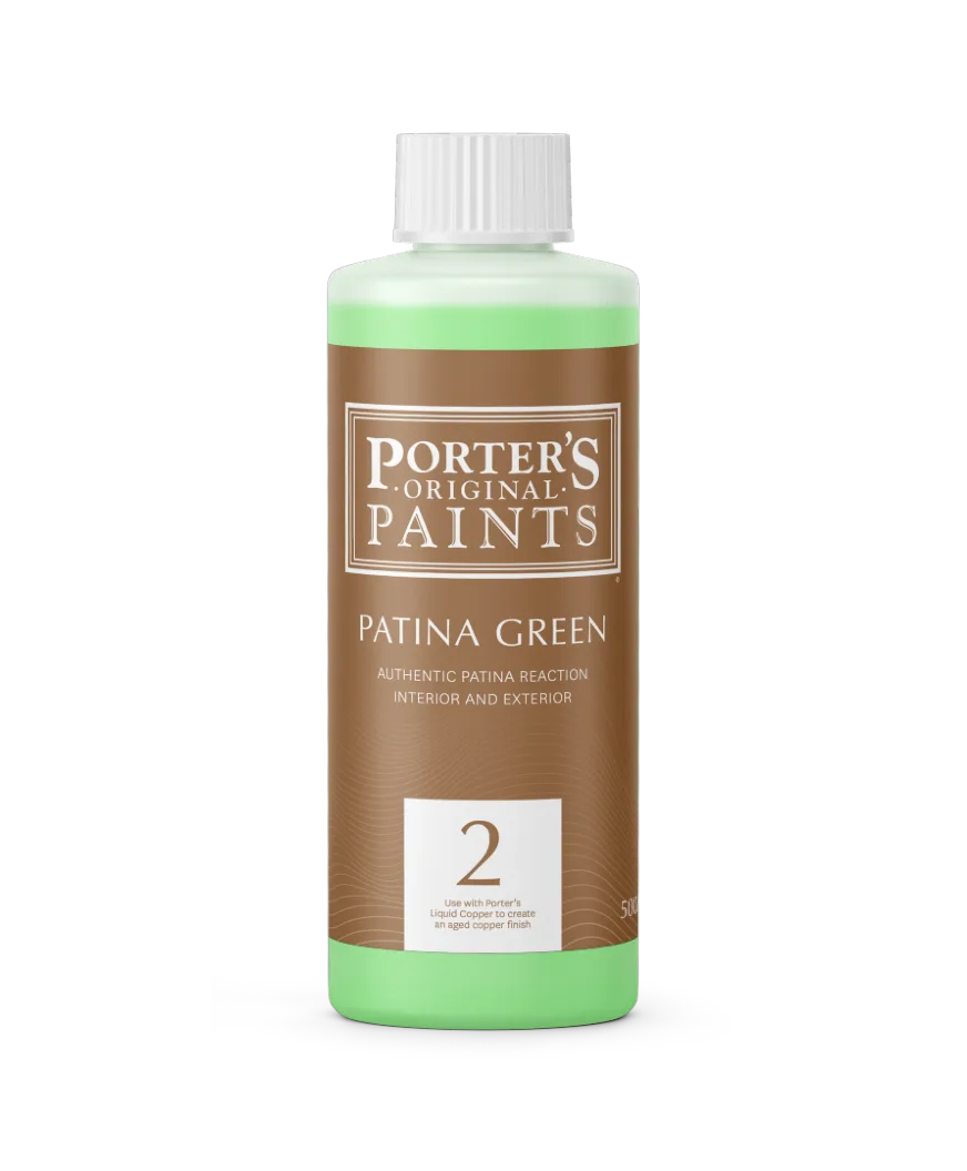 Porter’s Patina Green is a solution for use over Porter's Liquid Copper. A chemical reaction between the Liquid Copper coating and the Patina Green solutionoccurs to recreate copper with the green patination of age.
