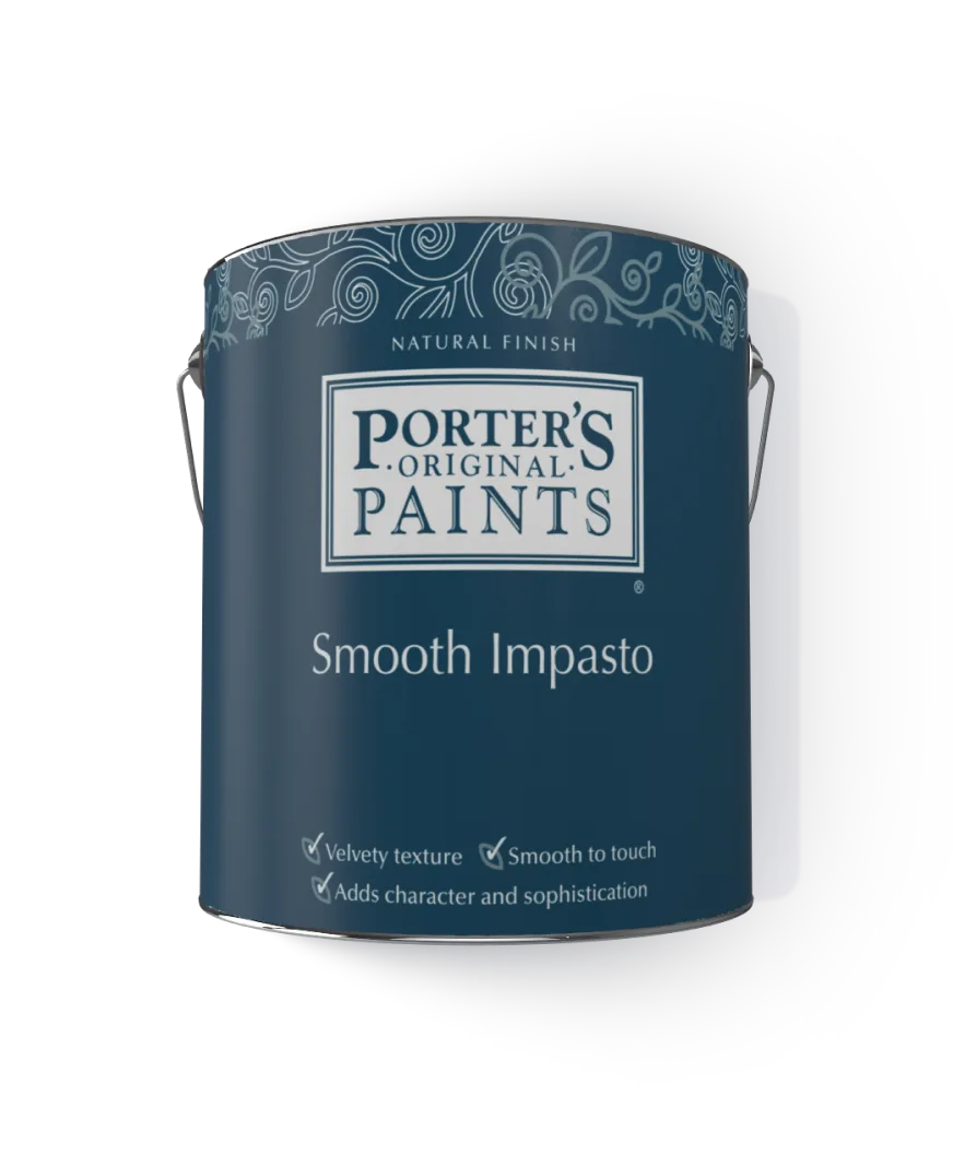 Porter’s Smooth Impasto has a softness of texture and depth of colour that gives a sophisticated, natural finish. It is characterised by a lack of uniformity, a distinct layering of pigment, and subtle but visible brush marks that are harmonious as a whole. The very matt, non-reflective sheen level is a very matt, non-reflective velvety finish that is smooth to touch.