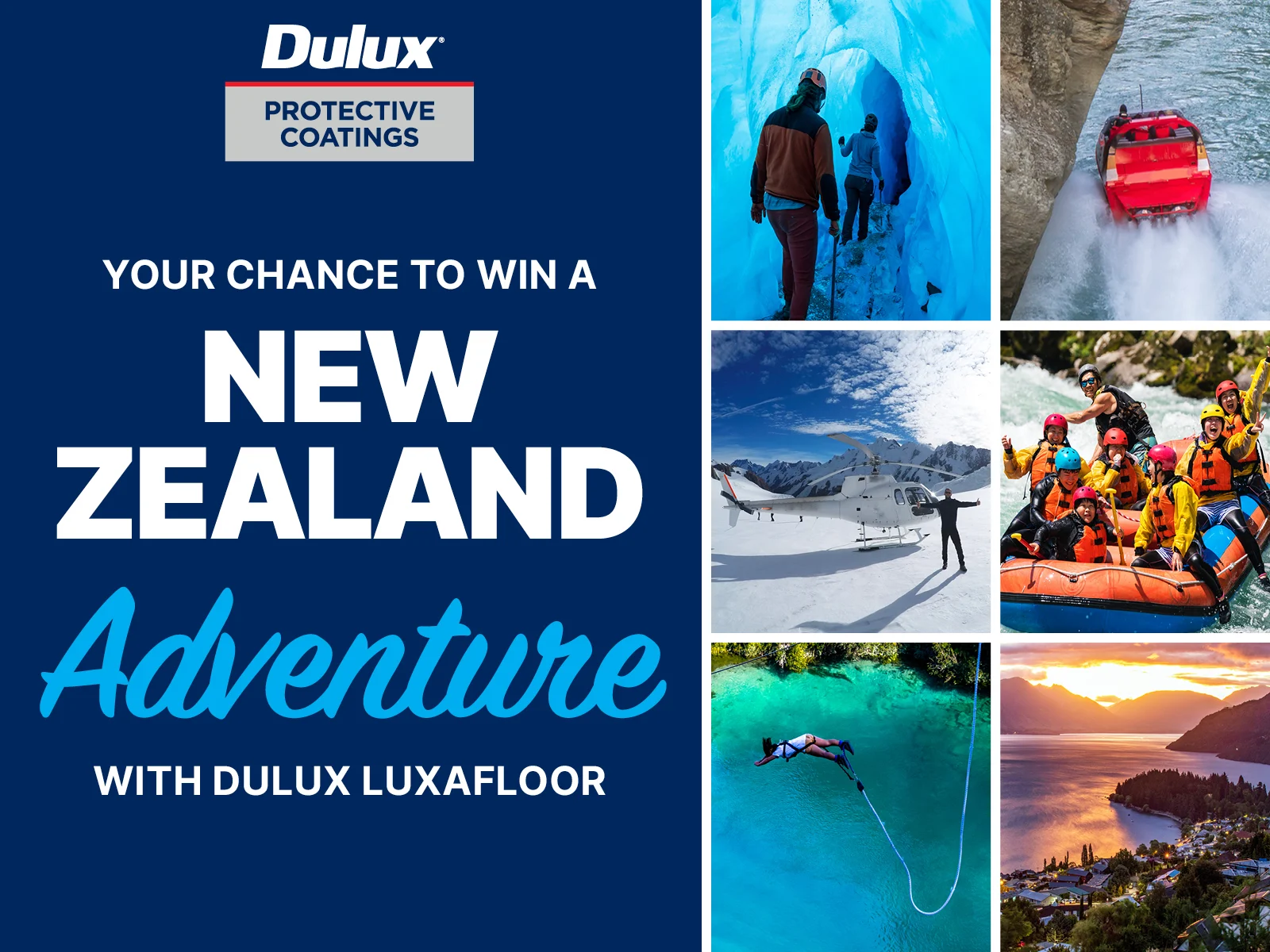 From 17th November to 31st December 2025, every 40L purchase of any Luxafloor® product on your Dulux® Trade account automatically gives you the chance to win an epic New Zealand holiday for you and four friends.