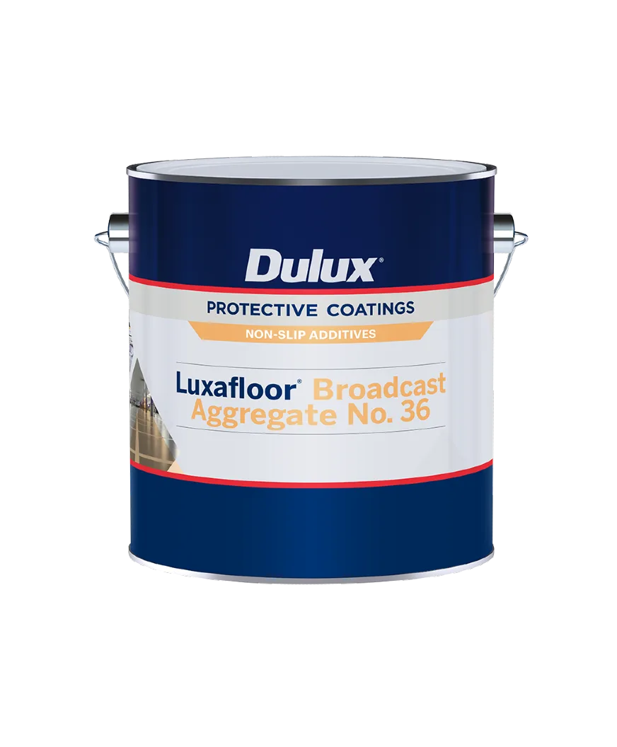 LUXAFLOOR® AGGREGATES are non-toxic, non-metallic additives for use with the Dulux® LUXAFLOOR® floor coatings to provide slip resistance. LUXAFLOOR® STIR-IN AGGREGATE FINE imparts a fine slip resistant finish to thin film LUXAFLOOR® products, while LUXAFLOOR® STIR-IN AGGREGATE COARSE and LUXAFLOOR® BROADCAST No. 36 impart slip resistance to higher build LUXAFLOOR® products.