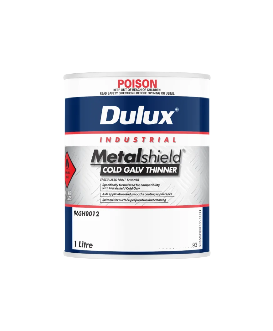 Dulux Metalshield® Cold Galv Thinner is specially formulated to be used with Metalshield® Cold Galv to increase workability and ease application. Also suitable for surface preparation and cleaning.