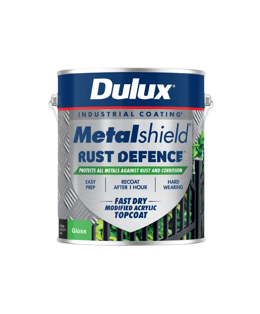 Dulux Metalshield® Rust Defence™ is a high performance topcoat deisgned for the protection of ALL suitably prepared metal surfaces. This fast drying technology is ideal for projects that require easy application and quick turnaround.