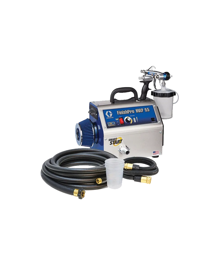 The FinishPro HVLP 9.5 ProContractor Series sprayer is loaded with features that provide the on-demand power control and easier operation with independent material, air and spray fan controls to increase productivity on medium-sized fine finish jobs.