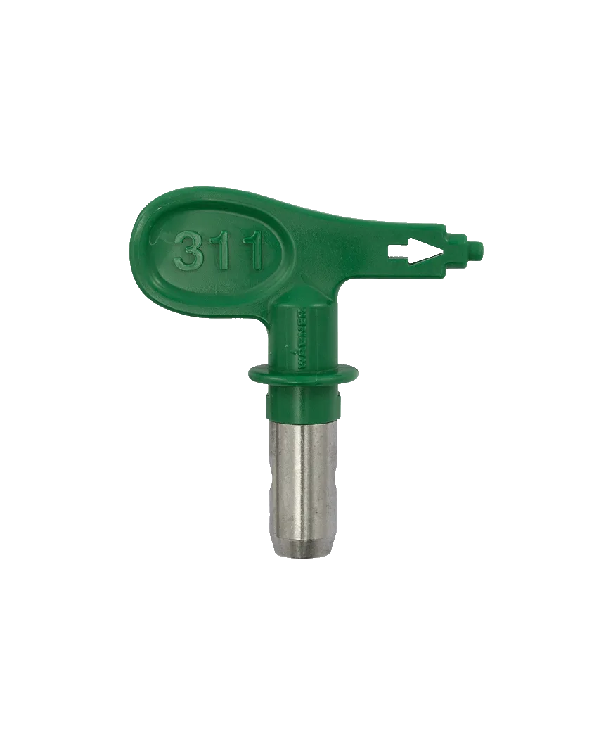 Tip 311 has an angle 30° sprayed at 300mm from surface & an orifice (paint flow size) of 0.011 inch. Suitable for most brands acrylic paints for painting walls, ceilings, fences & outdoor structural surfaces where a thicker paint & wider angle preferred, enabling large areas to be covered more effectively. Produces up to 55% less overspray than traditional airless tips & delivers a softer and more controllable spray pattern.