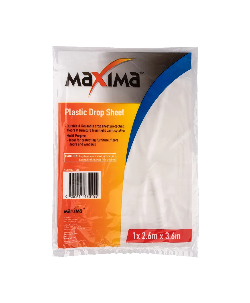 Maxima Plastic Drop Sheets provide a quick and easy way to cover areas for light protection from paint spatter and overspray. Ideal to cover furniture, floors and carpets when painting.
