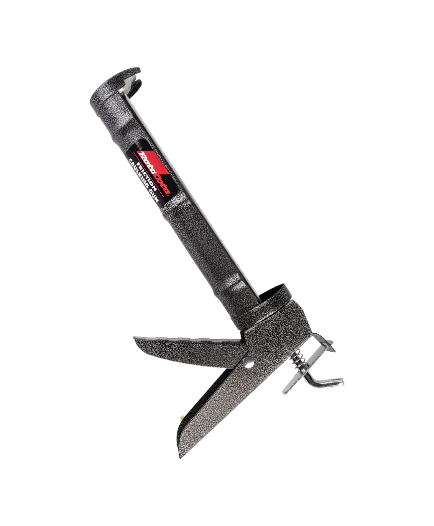 Durable steel framed friction caulking gun suitable for most sealer and caulk cylinders.