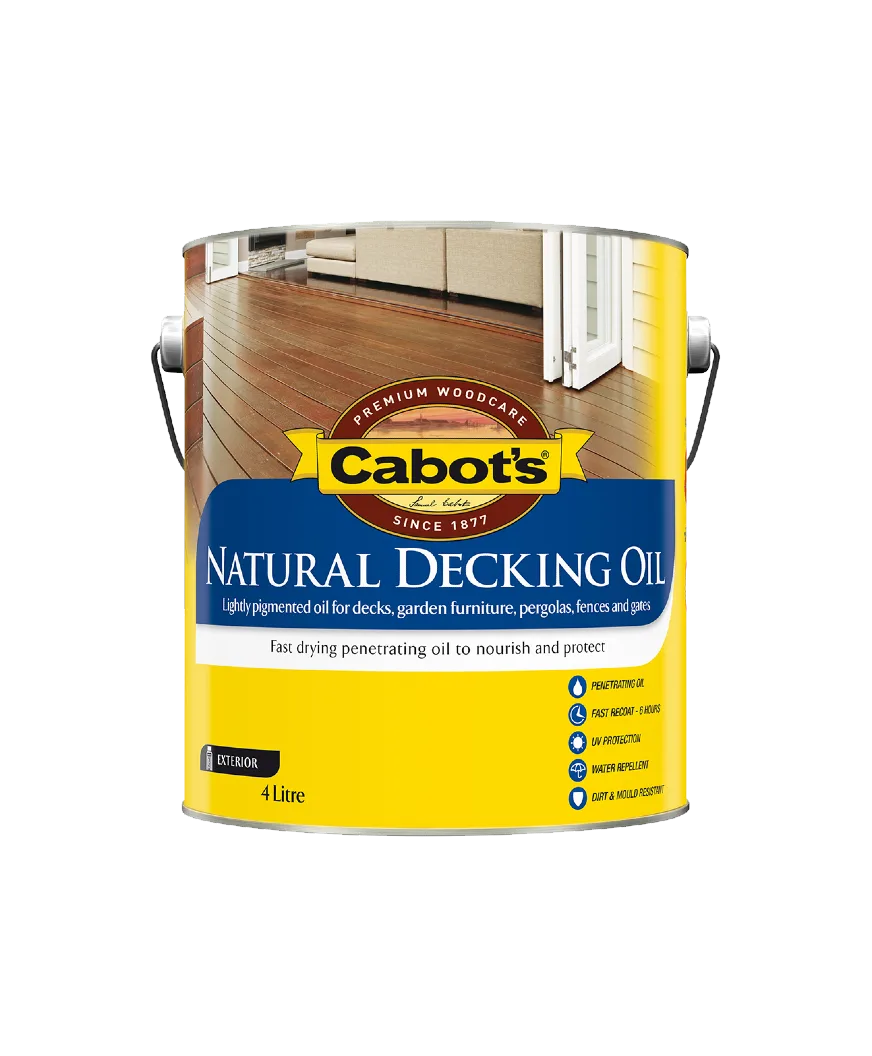 Cabot's Natural Decking Oil is a fast drying penetrating oil that nourishes and protects the timber. Its unique oil based formulation can now be recoated in just 6 hours so that you can get two coats on in a day. Cabot's Natural Decking Oil provides protection to timber from the most damaging environmental factors to extend the life of your exterior decking, garden furniture, fences, gates, and pergolas.