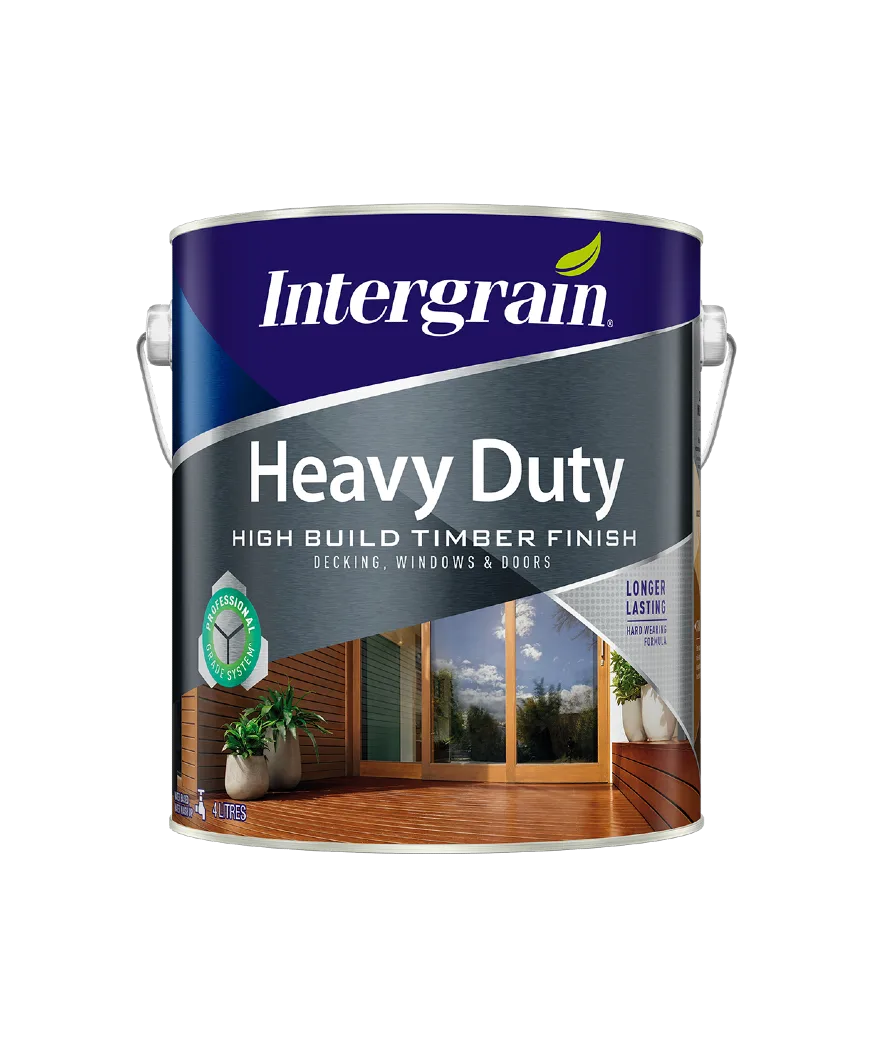Intergrain Heavy Duty is a semi-transparent, high build, water based exterior timber finish. Heavy Duty is designed to protect timber with a tough, UV, water and mould resistant finish offering superior durability for harsh weather conditions and is available in a range of tinted colours.