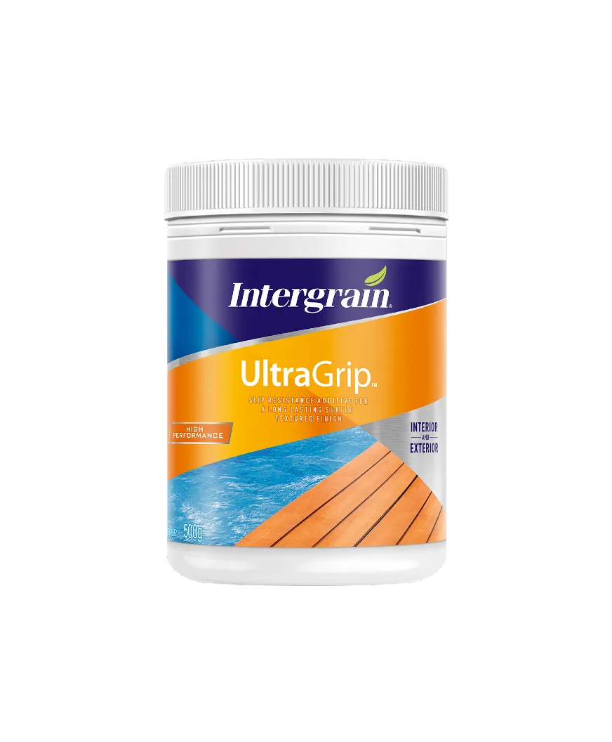 Intergrain UltraGrip is a slip resistant additive that has been specially formulated for use in various compatible* coatings. When used with these products, UltraGrip provides a high performance, long lasting finish which reduces the tendency for timber decking, exterior walkways, interior floors and stairs to become slippery.