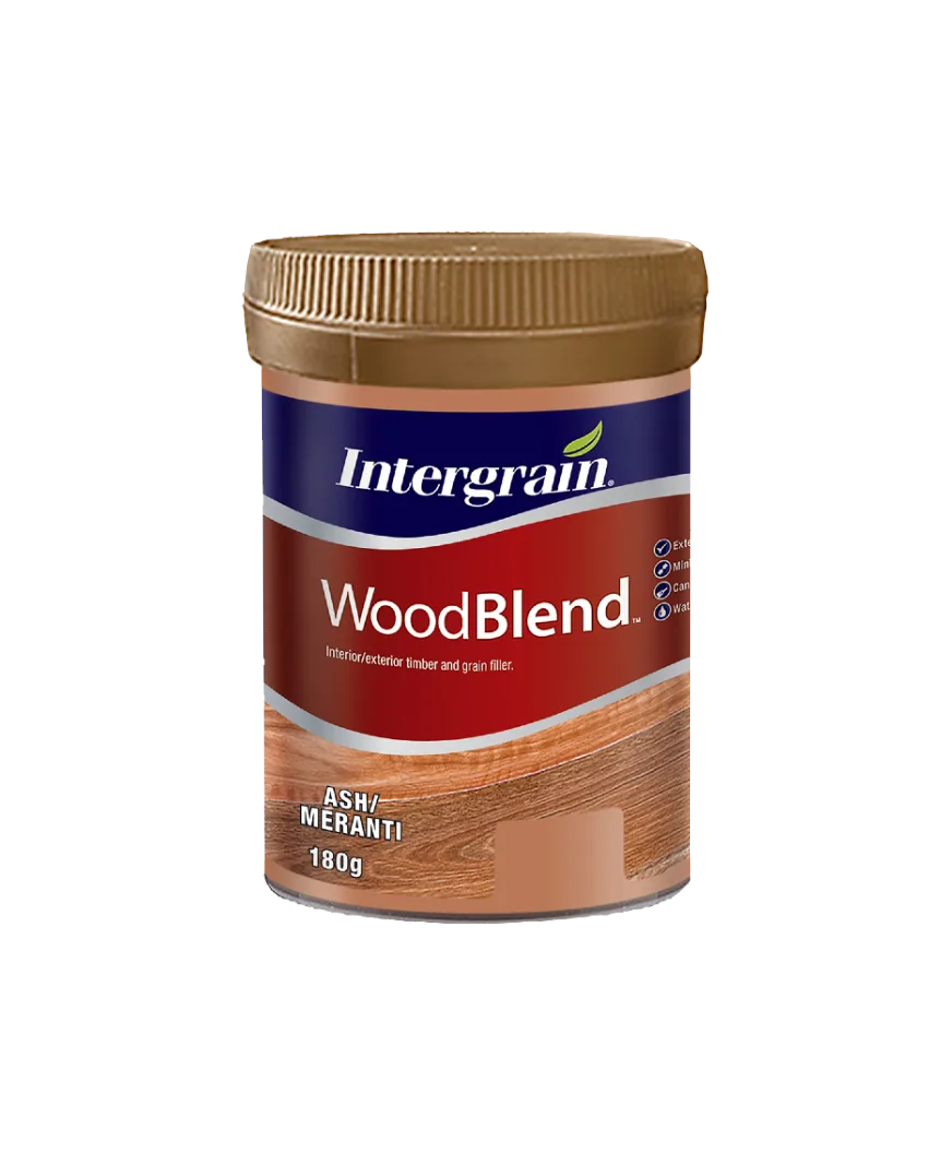 Intergrain Woodblend is a water based timber and grain filler, suitable for both interior and exterior use. Woodblend has excellent durability, minimal shrinkage and low odour. It is easy to apply and sands to an extremely fine, smooth finish. Woodblend is suitable for use on all timber species and can be coated with water or oil based paints, stains and timber finishes. Woodblend is available in a range of popular timber colours which can be mixed to achieve custom shades. Environmentally Responsible - Being water based, Woodblend emits significantly less VOC’s (volatile organic compounds) into the atmosphere than traditional oil based putties. So, combined with being healthier to use, Woodblend is much gentler on the environment.