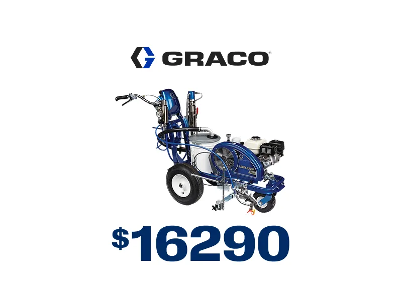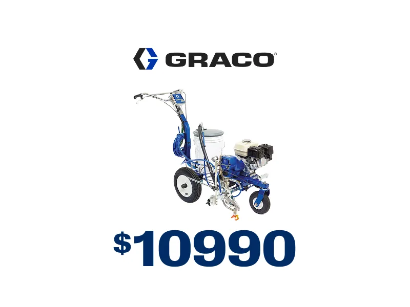 Hydraulic airless striping unit. EasyMark Gun Adjustment System. Simple front wheel alignment, no special tools needed.