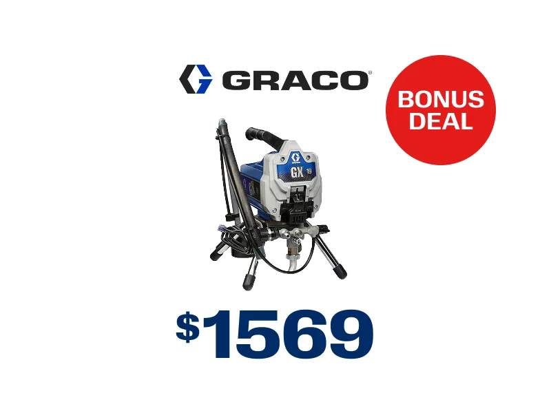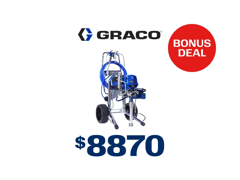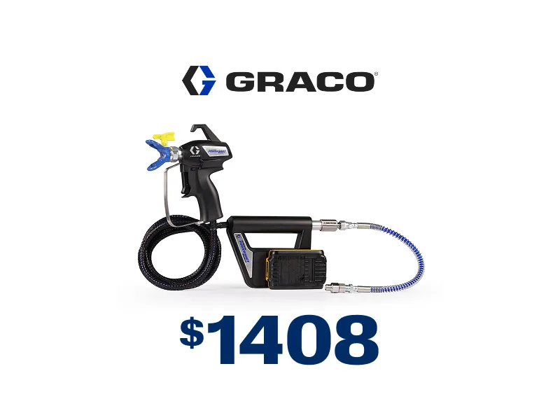 BONUS Accessories RRP $1780 via Graco redemption. Includes PowerShot Standard. Ideal for residential work, durable & lightweight. Brushless motor for higher efficiency & longer pump life. Contractor PC gun.